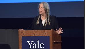 She isn’t the norm among rock artists. A gifted painter, poet, and memoirist, she has achieved eminence both at home and abroad for her literary achievement, winning America’s most prestigious prize, The National Book Award for her memoir, Just Kids (2010), sharing company with the likes of Faulkner, Bellow, Didion, Ellison, Auden and Roth. Earlier (2005), France awarded her one of its most prestigious cultural honors, “Commander of the Order of the Arts and Letters.”